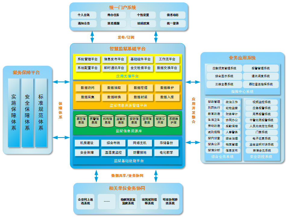 智慧監(jiān)獄整體解決方案-綜合管理平臺 ·概述 我司的智慧監(jiān)獄整體解決方案,立足司法部全國監(jiān)獄信息化“十三五”建設規(guī)劃,利用云計算、物聯(lián)網(wǎng)、大數(shù)據(jù)等信息技術(shù),以“數(shù)據(jù)集中、資源整合、應用協(xié)同”為主線,以“夯實基礎(chǔ)、突出管理、提升服務”為重點...